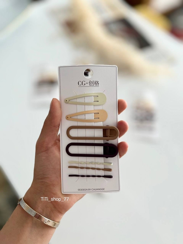 پک هفت عددی شامل یک جفت تقتقی یک جفت گیره انبری و سه عدد سنجاق مویی، قیمت برای یک کارت هفت عددی گیره میباشد